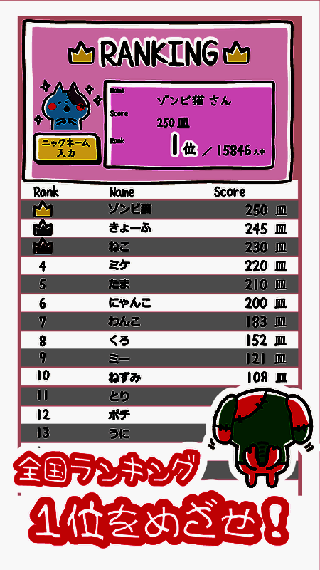 4、还有全球玩家竞争排行榜哦,大家一起不断刷新记录,与全球玩家竞争寿司大王吧。