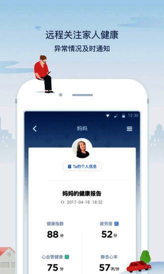 · 当监控到亲友的健康数据有异常和预警时,及时推送给关注人。