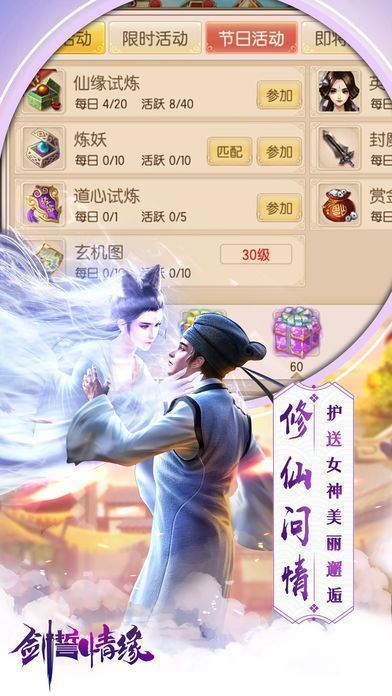 《剑誓情缘》是一款拥有端游级画质的修仙类RPG手游,这款游戏不仅能带给你经典的倩女幽魂游戏剧情,还能让你在这款游戏中享受到流畅的战斗操作快感!喜欢就赶快下载游戏开始体验吧!