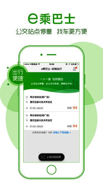 还在每天挤公交?还在每天花大把钞票在打车上?下载《e乘巴士》,让您享受最舒适的出行体验。每公里仅需不到5毛钱,在线购票,上车保证有坐。没有停靠站,直接把您送到家。快来下载体验一下吧。