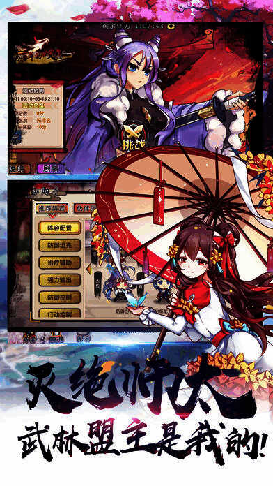 灭绝师太你站住是一款二次元游戏画风的武侠题材的RPG手游,游戏把武侠与二次元结合在一起,并且把人物都经过了娘化的处理,给玩家带来了全新的体验,为了自己的武林盟主之位,战斗吧。