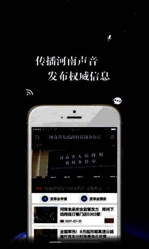 “豫新发布”客户端是依托河南省人民政府新闻办公室新闻发布和各厅局各地市、直管县新闻发布。