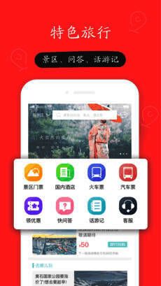 【特色服务—服务你我】APP内提供旅游出行问题的问答,解决旅行中遇到的问题。同时提供特色游记上传,一起来打造属于自己的‘旅游圈’吧。发图文游记还能得到现金红包和票务优惠券。