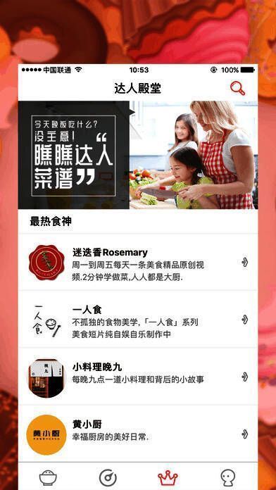 2、这里有一批热爱美食热爱烹饪并且热训于分享的达人,这里入驻了几百位热衷于美食的达人,每日都会有新鲜的菜谱分享给大家,来自五湖四海的人也给我们带来完全不一样的菜谱和烹饪方法;