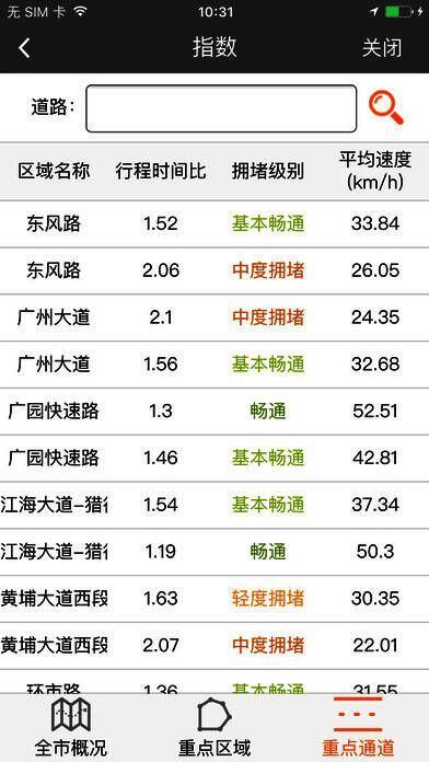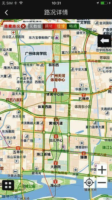 在路况地图上通过红、黄、绿三种高亮颜色分别代表拥堵、缓慢、畅通三种交通路况,直观地把实时路况信息显示给用户。有助于出行者避开拥堵的出行路线,节约出行时间。