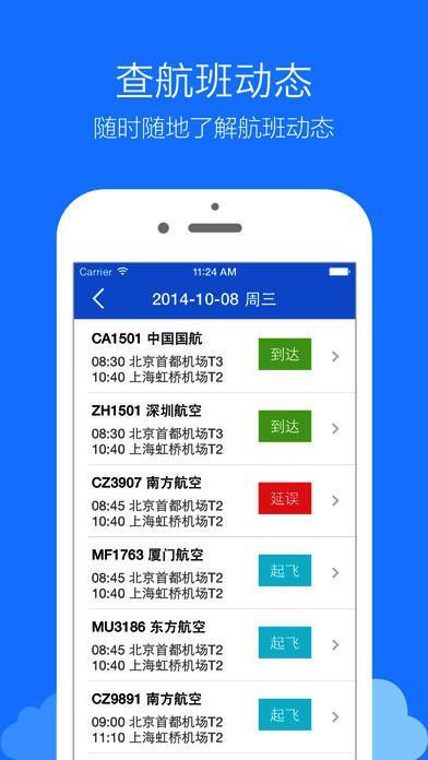 可按航班号和起降地查询航班的实时动态,实时掌握航班动态,航班延误、预计航班起降时间等情况。