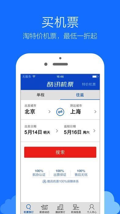 5、安装酷讯机票,查询预订、支付宝支付、查找航班动态、帮你值机;
