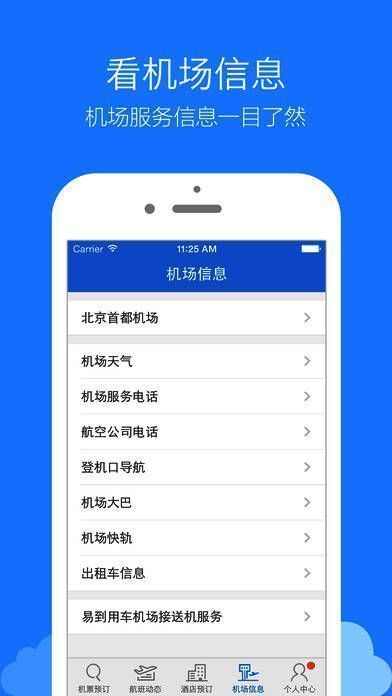 包括机场大巴、机场天气、机场电话、机场导航、航空公司电话等信息,接送机服务更贴心。
