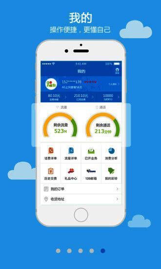 3、点击我的,就进入自己的账户信息平台,想要知道自己用了多少话费,剩余多少流量,有没有办理一些莫名其妙的业务,或者是想要再加一个流量包,都可以轻松解决!还能看到自己累积的积分了哦!不要小看积分!积少成多,最后还能兑换话费或者是别的商品哦!说了这么多,是不是感觉特别方便呢!那就赶紧来下载吧!