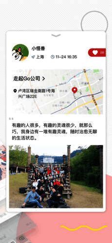 发现生活就用《走起Go》!这款软件不仅能让你通过视频和文字了解他人的美好生活,你还可以自己发视频分享趣事找到与你有一样爱好的小伙伴哟!赶快下载软件开始使用吧!