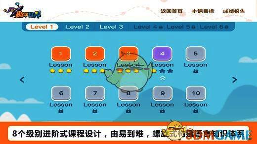 2、螺旋式上升课程体系 8个级别,进阶式的课程体系,由简到难,螺旋式构建语言知识体系。 单词、句型由浅入深、语言中学习语法,听、说、学、练、用,多个环节巩固知识;