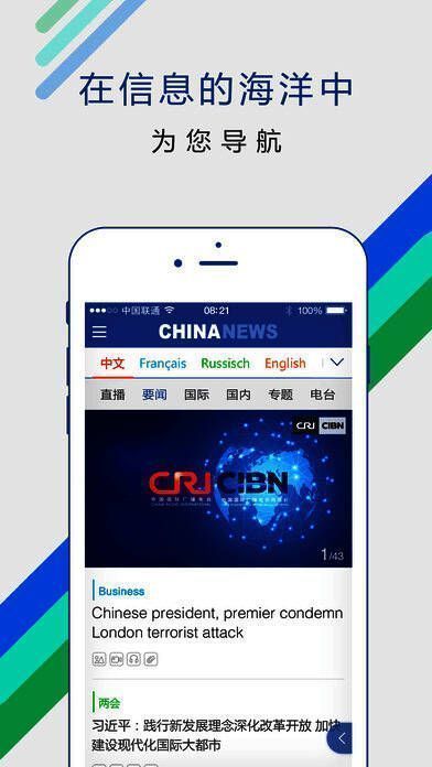 APP支持中、英、西班牙、法、俄等主流文种及日、朝、蒙等文种,是全球用户关注中国、了解中国的窗口,也是海外华人情系祖国的精神家园。