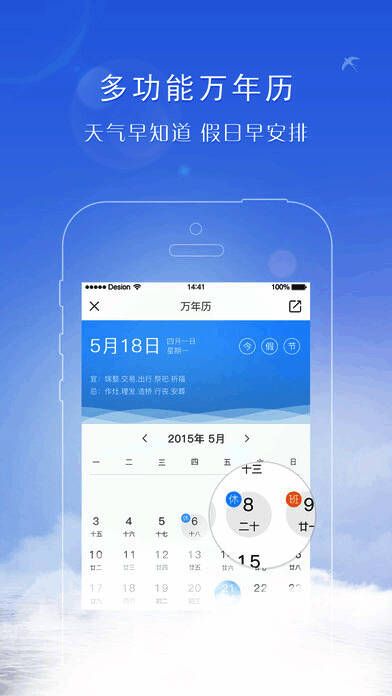 天气宝,提供全球5000多个城市县区天气信息,采用国际多家气象机构数据,天气信息准确全面,包括24小时预报、未来十五天预报。万年历日历查询,让您查看天气同时快速了解日期信息,黄历宜忌应有尽有!日出日落方便您日出而作日落而息,气压、湿度、能见度是您户外钓鱼的好帮手!空气质量、污染指数、温度趋势、pm2.5等更加丰富、准确的天气信息!提供穿衣、洗车、紫外线、感冒、运动、旅游等生活指数,是您日常生活、出行旅游的必备APP!