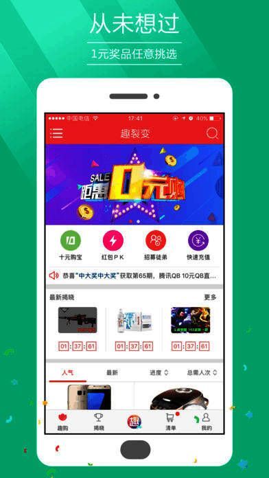 《趣裂变》app是一款非常好用的网络购物软件,实现了多个实用功能,定期还有各种活动等你来抢购,旨在让用户们享受更加省时、省心、省钱购物体验!
