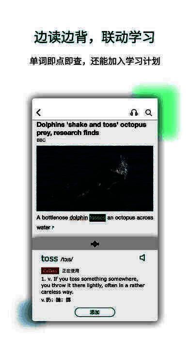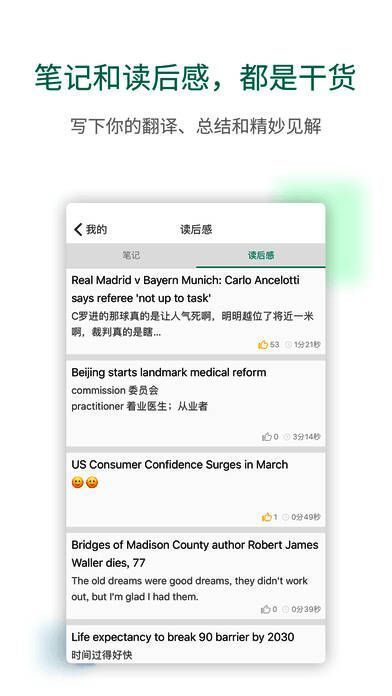1、阅读过程中的每个生词都可以即时添加到自己的学习计划中,利用扇贝强大的记忆系统进行学习;