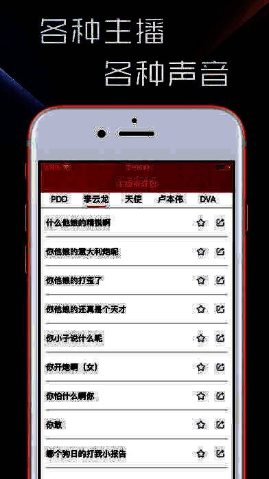 主播语音包是一款可以模拟主播声音的变音软件。通过主播语音包,可以在游戏中与队友交流,用主播声音与队友沟通,刺激好玩!主播语音包模拟各种主播,影视人物,游戏的音效,让你在游戏路上炫酷到底!让队友吃惊,让观众迷茫,你就是你,不一样的烟火~卢本伟,李云龙,各种大咖魔性的声音,你都有。