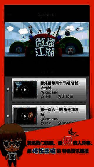 2、千万用户的挚爱,5亿次点击播放彰显品质,盘点网络最热门搞笑资讯的权威栏目,唯有“微播江湖”;