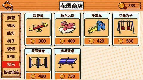 1、可供你来装修打扮自己理想中的家园:花园,客厅,卧室,厨房。