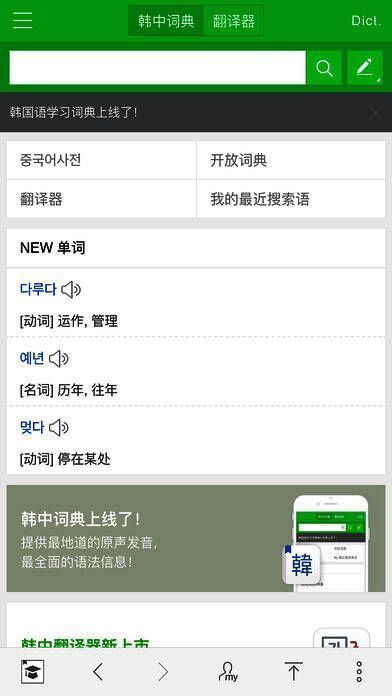 NAVER词典是一款主要以韩语为主的手机词典软件,同时NAVER词典也包括了19个语种的语言词典和知识百科词典,让你有了NAVER词典搞定一切不成问题。