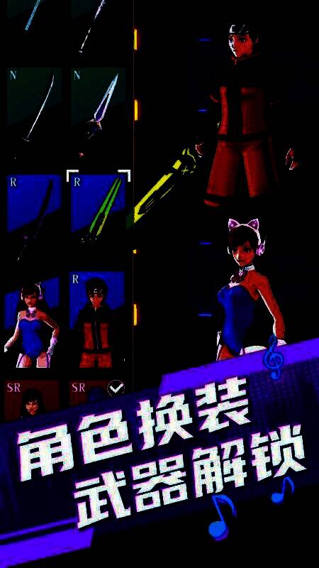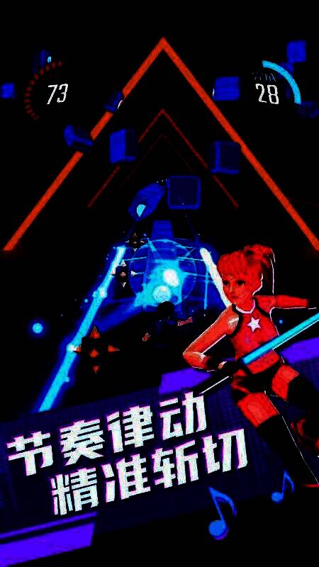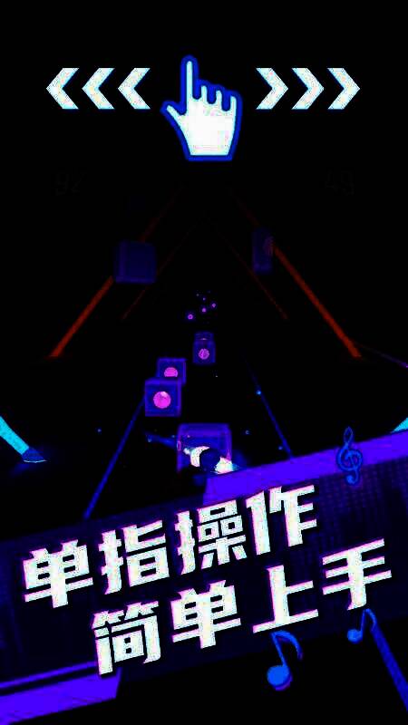 感受节拍的律动,向左或者向右滑动,避开路上的所有障碍物,并挥动手中的武器切开方块;