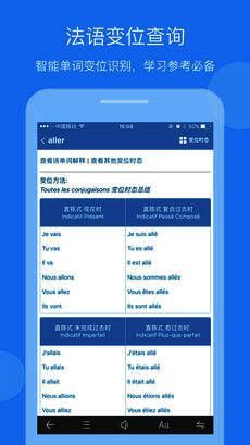 6、法语动词变位查询,提供18种时态的动词变位反查功能;