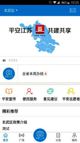 平安江苏app是一款专门针对江苏志愿者用户打造的便民服务应用,用户可以在线上传你身边不文明的事件,还可以在线查询、浏览,做好监督的作用,为创造和谐文明城市做贡献!针对平安志愿者及普通用户,宣传平安建设的相关政策及法规介绍;提供便民服务;提供矛盾纠纷等的上报,供政府进行处理,推广平安建设。