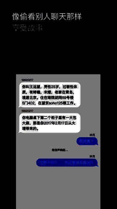 1、轻触屏幕唤醒故事,还原对话场景,就像偷看别人的聊天记录那样享受故事;