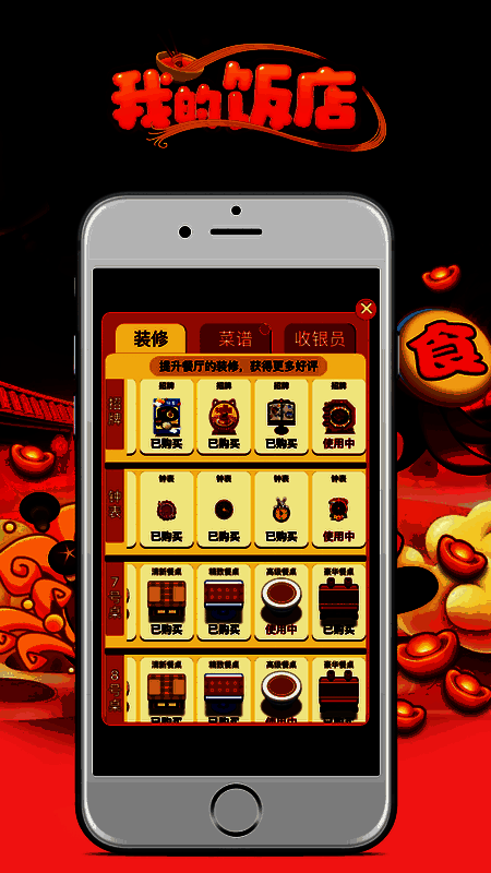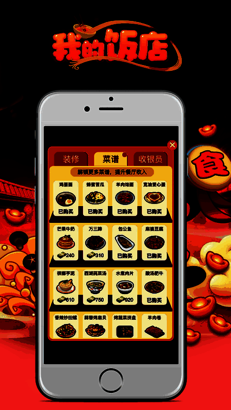 不断收集金币、达成成就,餐厅的利润收益将会翻倍增长!