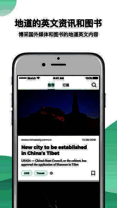 2、获取最新最纯正的英文资讯,涵盖新闻、生活、经济、文化、体育等各类常见题材。