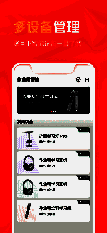为了提升使用的灵活性与便利性,《作业帮智能》支持一台App绑定并管理多个作业帮系列智能硬件设备,无论是学习笔还是其他辅助工具,都可以在一个平台下轻松掌控,极大简化了家长的操作流程,提升了整体管理效率。