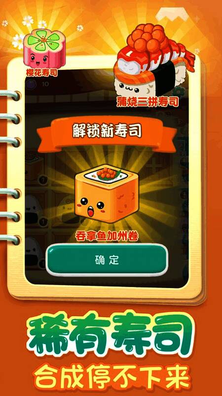 每个寿司都会在玩家眼前闪耀,两个寿司可以合成,充满乐趣。