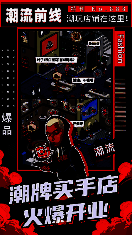 从小商铺做起,打造潮流帝国,稳步提升商铺设施,将小商铺打造成全球最强的潮牌;