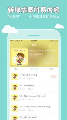 作为10万高端家庭宝宝最喜爱的音频应用,七田真APP提供了丰富有趣的智力开发音视频资源,包括睡前故事、经典儿歌、童谣故事、国学、儿童英语、胎教音乐等上万首高质量音频。同时也为家长们提供了各种实用新潮的育儿内容,通过家长课堂、七田真专家直播、日本妈妈育儿视频、育儿电台等,时刻向爸爸妈妈们分享海内外新的育儿观点知识。