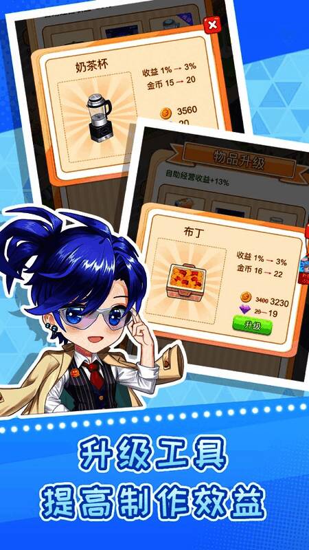 3.简单的休闲商务游戏,继续发展你的网络名人奶茶店,让你的生意更受欢迎。