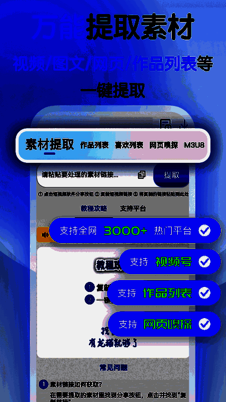 该软件集多功能于一体,涵盖从素材查找、提取到后期处理的完整流程。其内置的链接提取功能极大简化了资源获取过程,节省大量搜索时间。此外,平台每日更新热门资源,紧跟潮流趋势,满足不同用户的多样化需求。