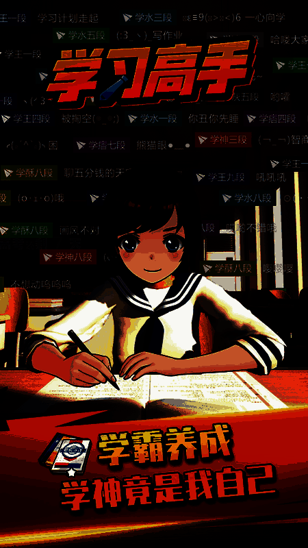 《学习高手》一款好玩的模拟学校游戏,玩家在这里会扮演一个学生,根据自己的情况,在游戏中设定挑战,培养自己的角色,不断超越自己的成绩,享受竞技打法的特点,如果你在任何一门学科上都不好,你应该把注意力集中在那门学科上,直到你的成绩提高为止,那还等什么,感兴趣的下载去体验吧。