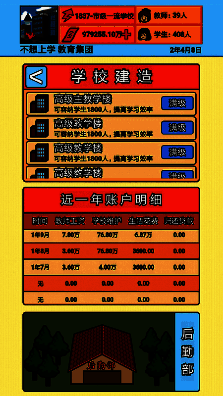 真实模拟一个校园,需要建设各种设施,合理开发学校的各种资源,毕竟学校的发展是要花很多钱的。