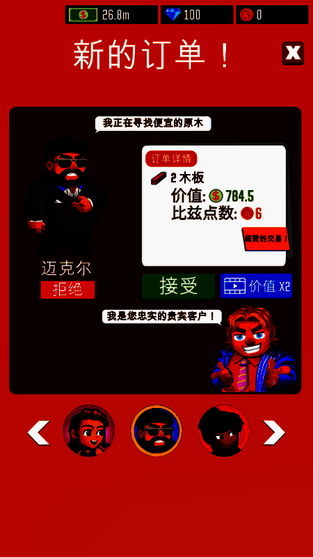 在这个游戏中,作为老板,你可以投资各种项目,不断提高赚钱的速度,成为最富有的老板。