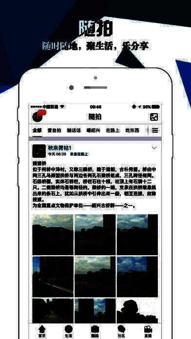 支持随手拍照发帖,一键上传,不用担心错过突发事件和灵感!