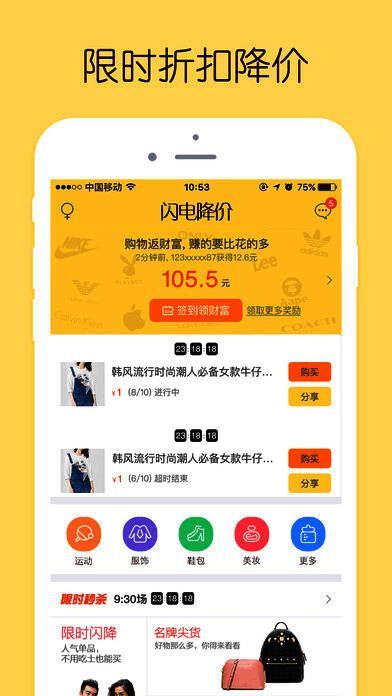 闪电降价,一款限时特惠APP,新用户注册立享500元优惠券,心动不如行动;