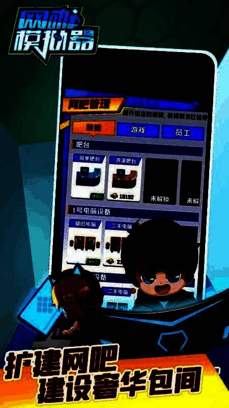 网咖模拟器一款玩法很丰富的休闲模拟手游!这款游戏模拟了真实的网吧环境,更有超多丰富功能带给您最极致的体验;你作为网吧的老板需要经营好自己的网吧,每天清洁网吧,为玩家提供干净卫生网络环境,更有多样精彩内容供你探索!