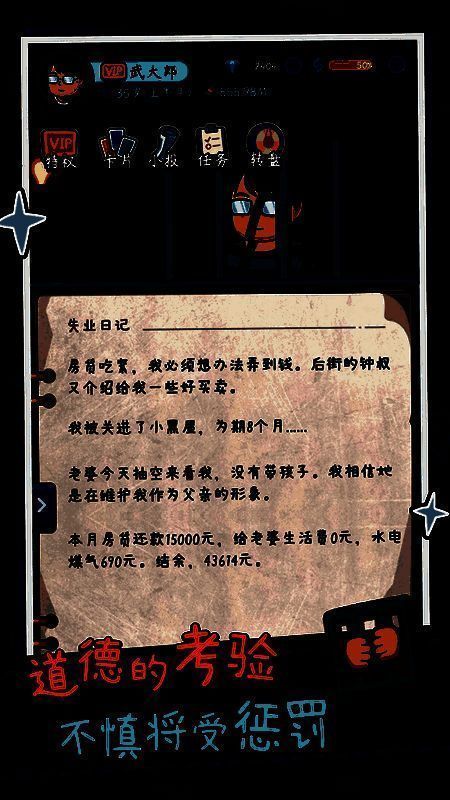 《中年失业模拟器》一款有趣的失业模拟游戏,玩家化身中年失业者开始你的创业生活,你也可以体验各种生计工作,享受不同的创业生活,并且玩家可以在游戏中选择很多职业,包括更传统的工人、司机、外卖送货员、搬砖建筑工人等,那还等什么呢,你也赶紧下载体验不同人生吧。