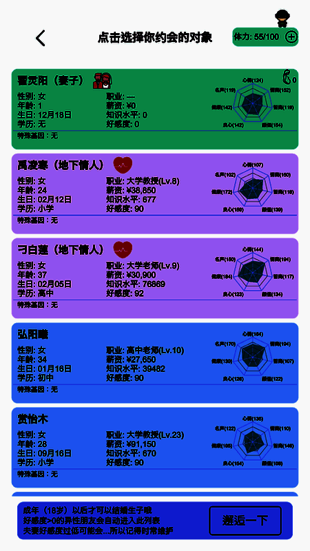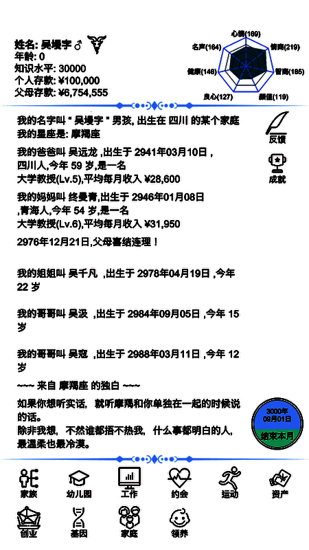 一款好玩的文字人生游戏,给玩家带来激情的模拟挑战,在游戏中,玩家可以从婴儿开始模拟,并在生活的道路上开始冒险挑战,在游戏中,玩家有丰富的选择,挑战更多的模拟选择和乐趣,生活中有许多谜题等着你去探索。