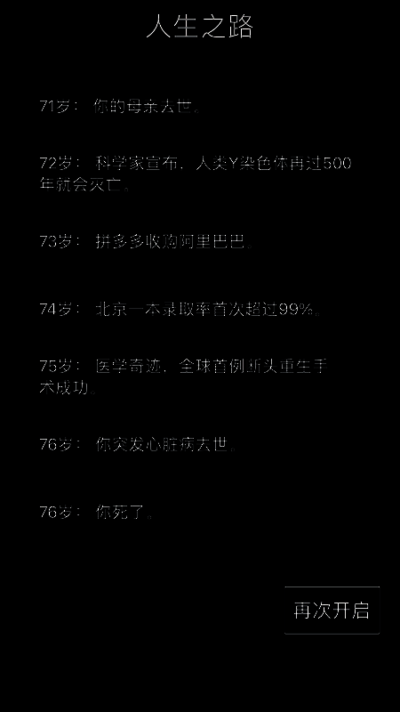 《人生重开模拟器》一款好玩的人生模拟游戏,剧情很是丰富,所有生活情节,一切都可以重复,纯粹的文字游戏、激动人心的情节和各种不可预知的结局让你随时可以重新开始你的生活,并且可以解锁各种不同的开局,它有很好的游戏玩法,非常的自由,那还等什么,感兴趣的下载吧。