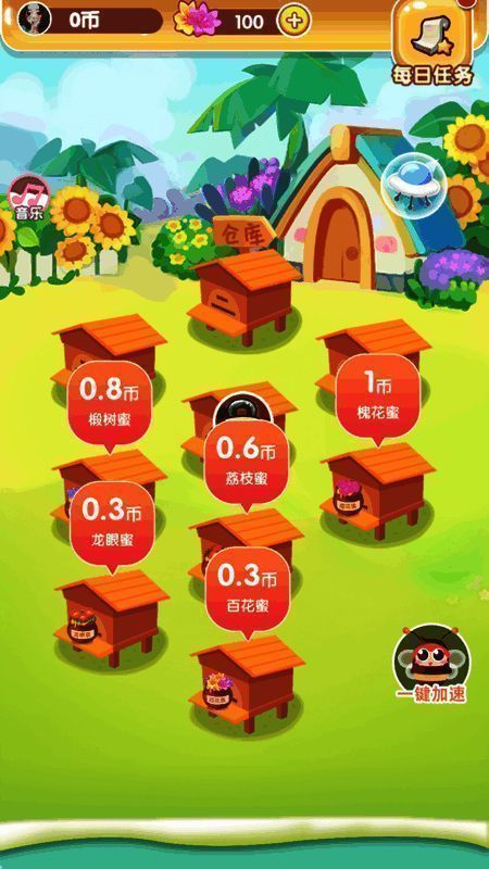 培育蜜蜂生产蜂蜜,然后将其出售以购买更高级的蜜蜂。