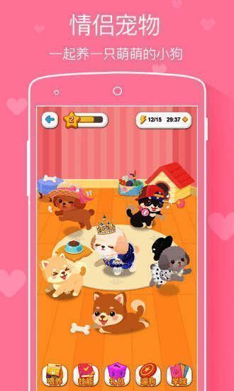 4、情侣游戏:两人一起种下见证爱情的小树苗,领一只可爱萌宠,布置温馨情侣小家,和爱人一起情侣消消乐。