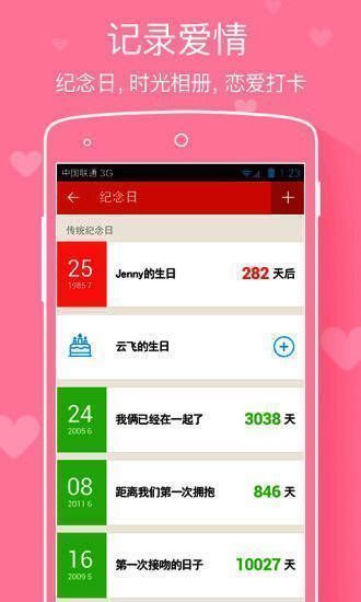 5、情侣纪念日:记录情侣间每一个值得纪念的日子。