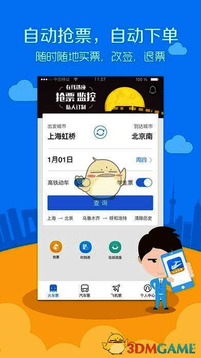 高铁票务app让您随时随地购买火车票、机票、汽车票、酒店。