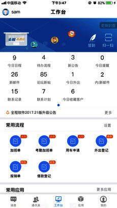 流程管理:随时即可查看详细的流程管理信息,让你享受着办公的整个过程。