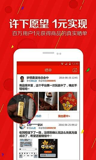 《许愿夺宝》是一款一元筹服务平台,在这里,你之需要花一元许愿想要的商品,便有几率发生奇迹,高价的商品你便能拿走!想象一下,只需一元,便能收获高端产品。那兴奋的心情真是难以言表啊!